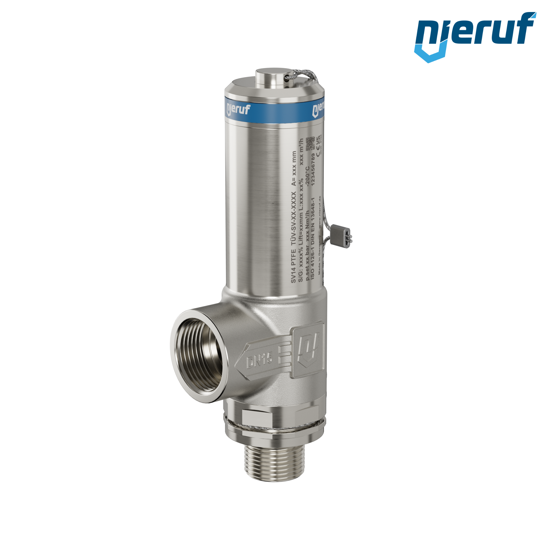 valvola di sicurezza criogenica DN10 3/8" M x 1/2" F SV14 per gas liquefatti/condensati criogenicici in acciaio inox guarnizione PTFE impostazione della pressione 0,2 - 70,0 bar
