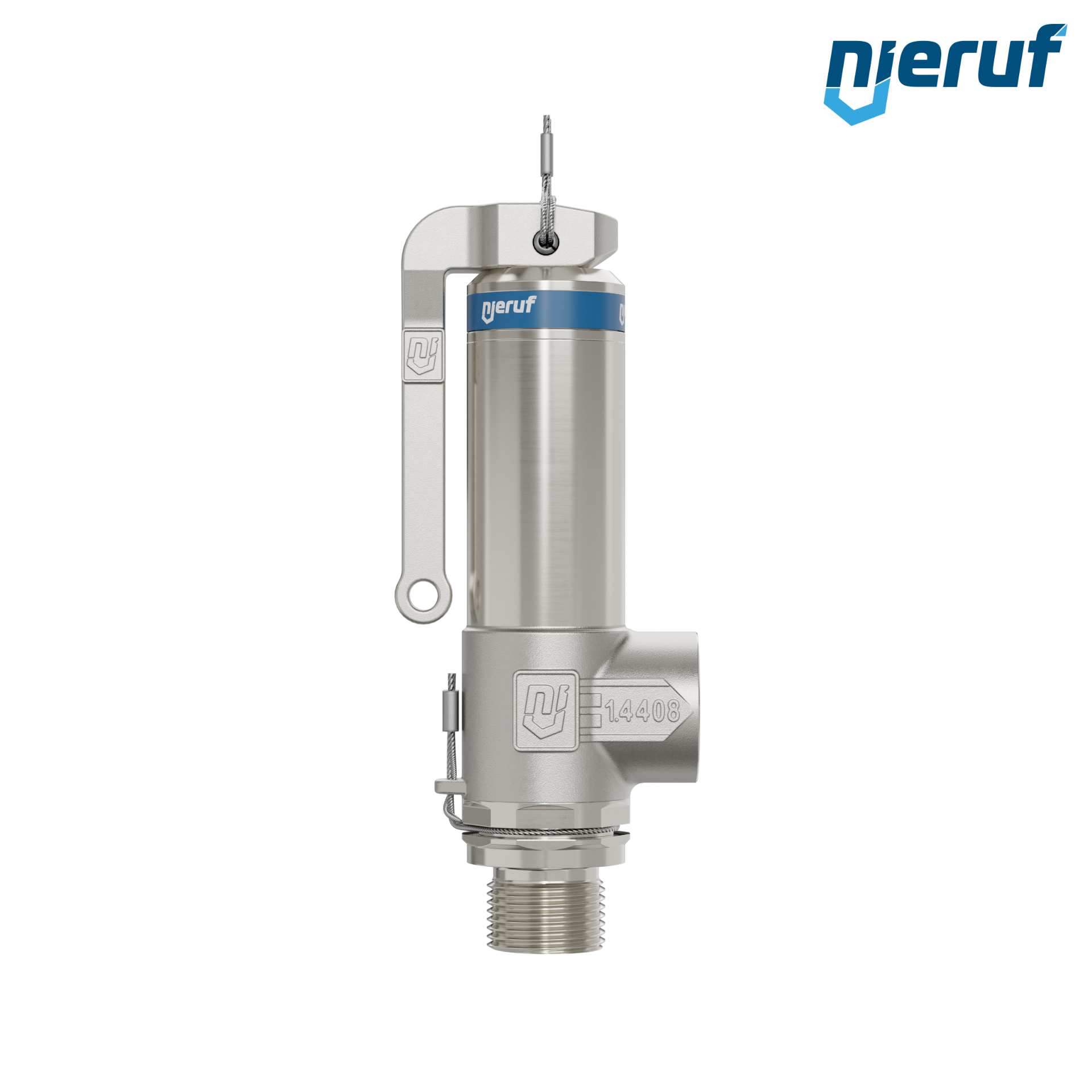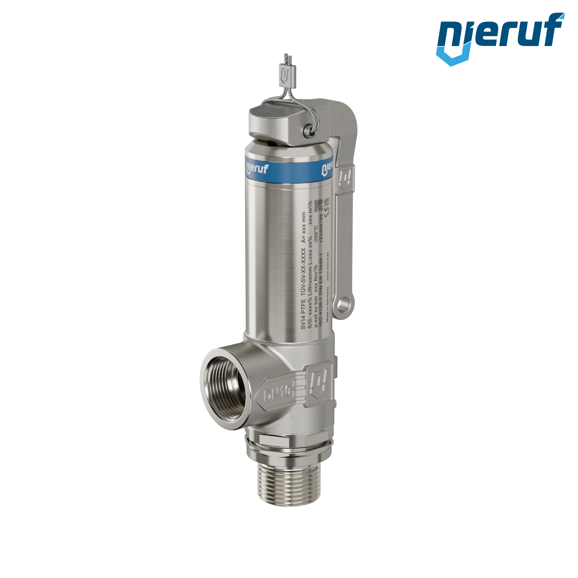 valvola di sicurezza criogenica DN8 3/8" M x 3/8" F SV14 per gas liquefatti/condensati criogenicici in acciaio inox con leva di sollevamento guarnizione PTFE impostazione della pressione 0,2 - 70,0 bar