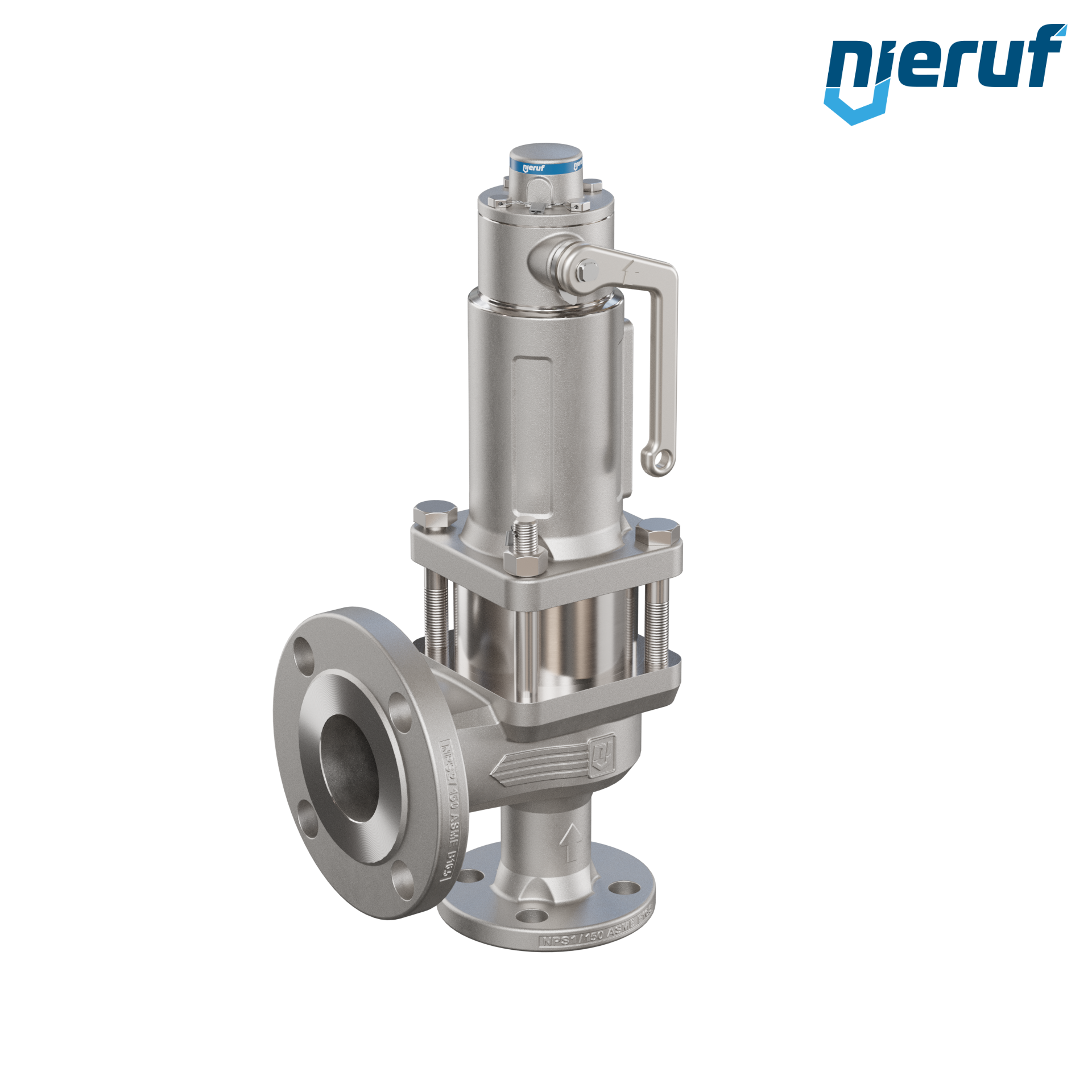 valvola di sicurezza flangiata ASME fluidi gassosi a tenuta di gas manicotto di tenuta ANSI 150 DN25 1" x 2" SF04, acciaio inossidabile, EPDM, dispositivo di sollevamento con leva