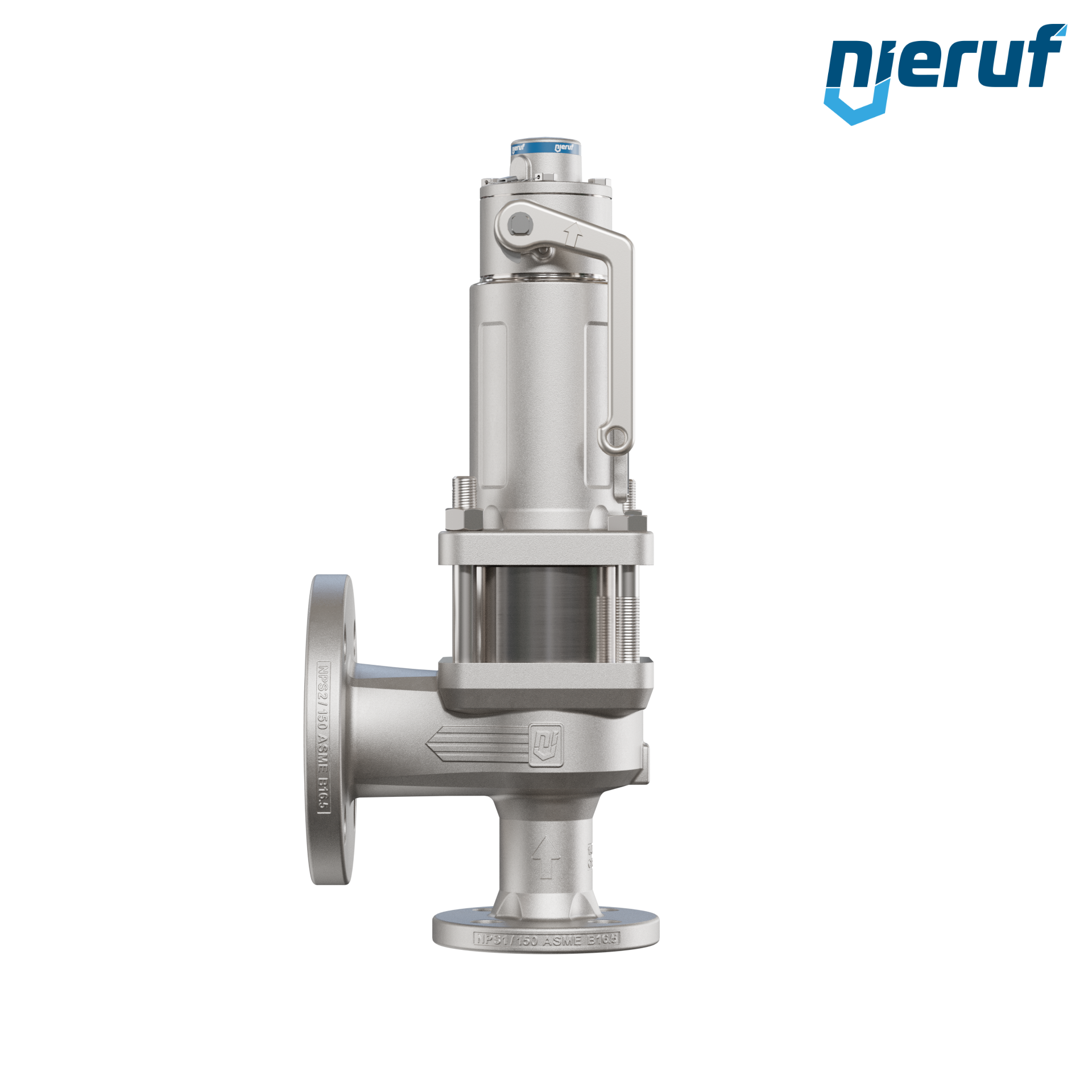 valvola di sicurezza flangiata ASME a tenuta di gas DN25 1" x 2" SF04 per fluidi gassosi in acciaio inossidabile, guarnizione EPDM impostazione della pressione 0,3 - 20,0 bar flangia ANSI 150 dispositivo di sollevamento con leva con manicotto di tenuta