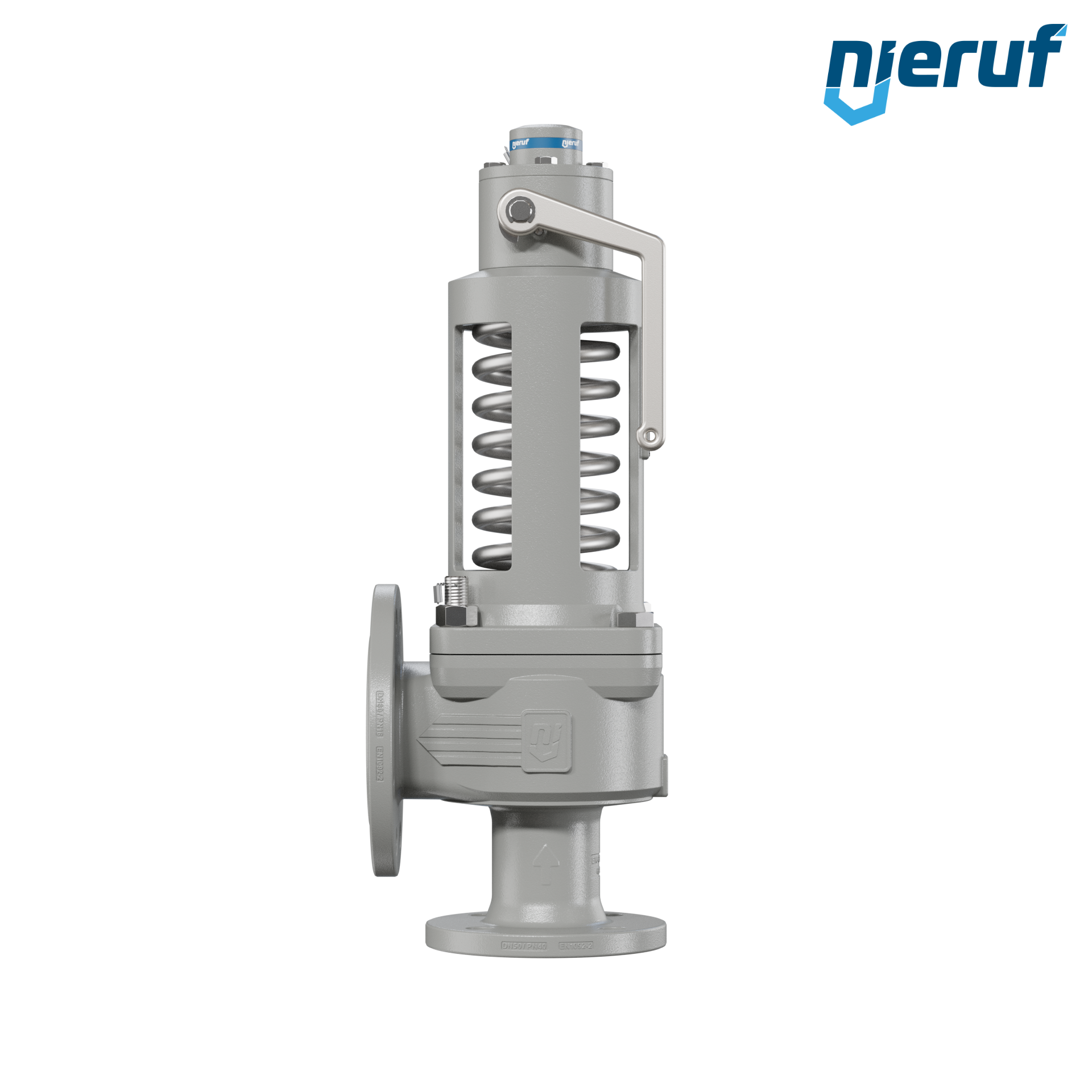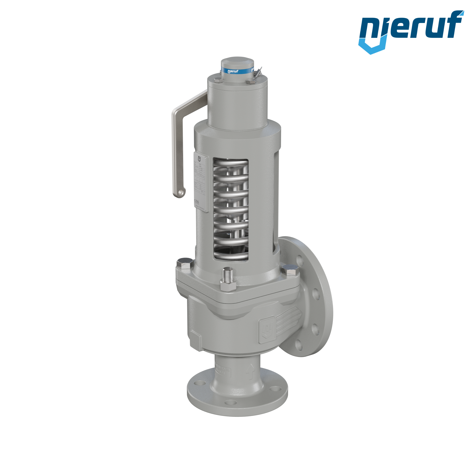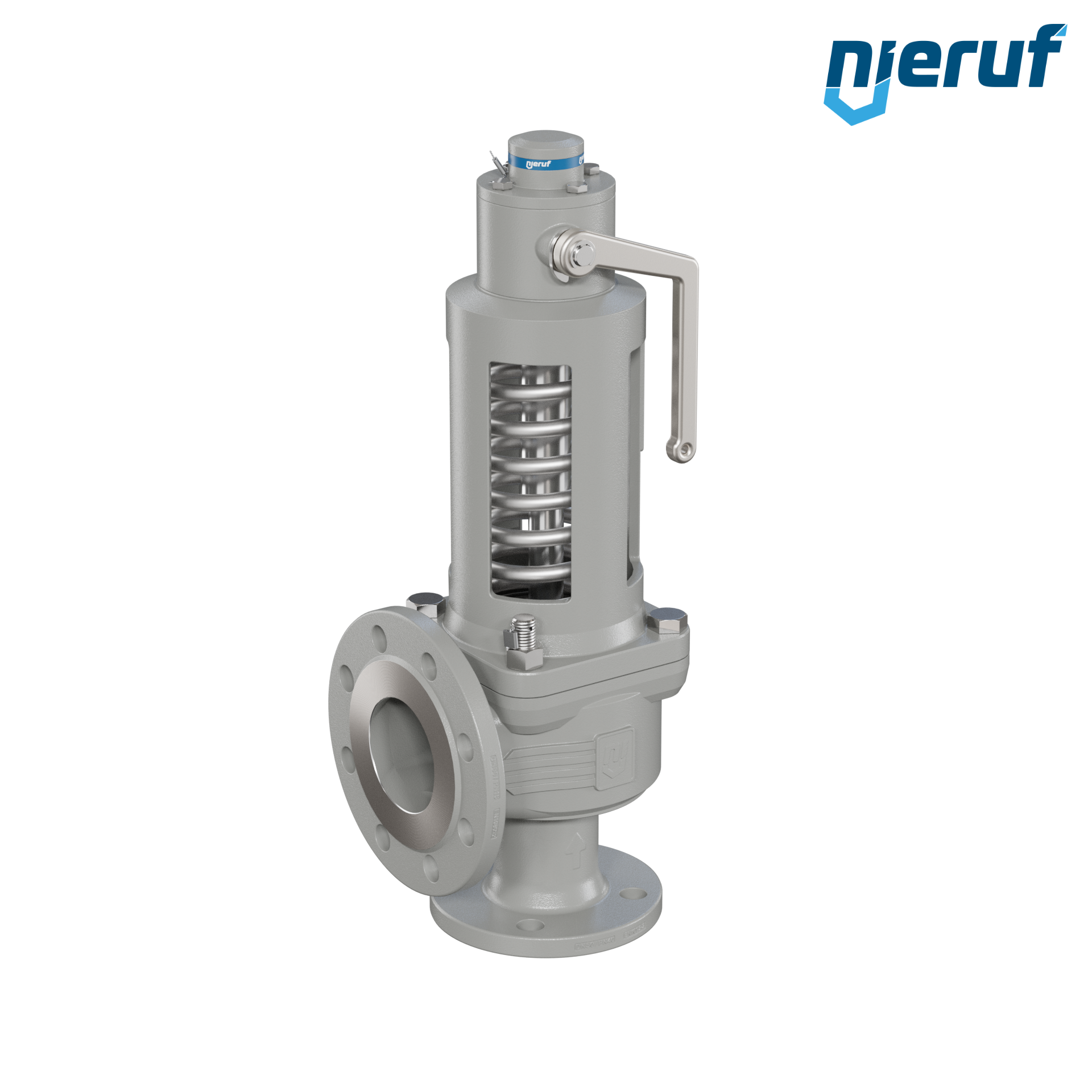 valvola di sicurezza flangiata DN50/DN80 SF06 per fluidi gassosi in ghisa sferoidale DIN EN 5.3103 guarnizione metallo impostazione della pressione 0,2 - 40,0 bar dispositivo di sollevamento con leva cappello della molla aperto