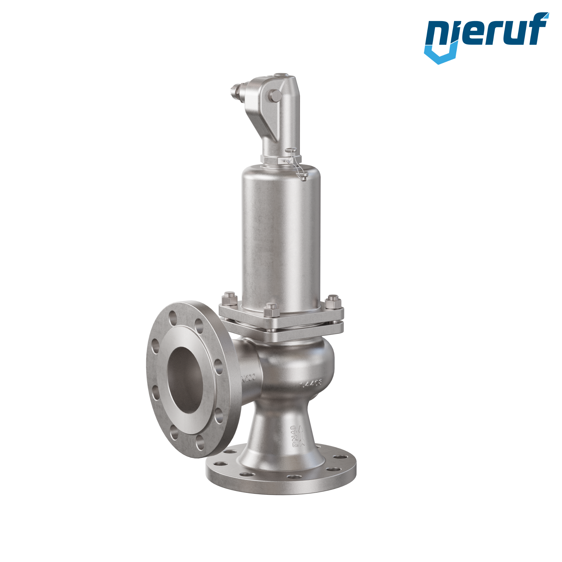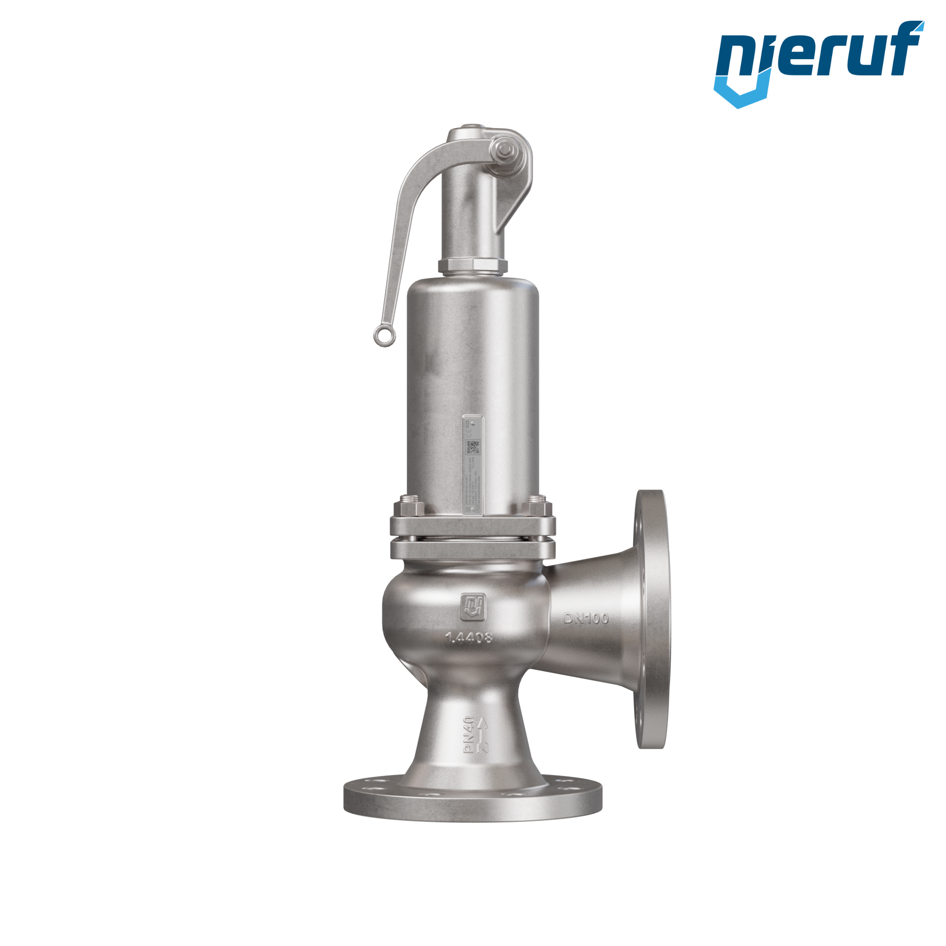 valvola di sicurezza flangiata DN100/DN100 SF03, acciaio inox 1.4408 FPM, con leva