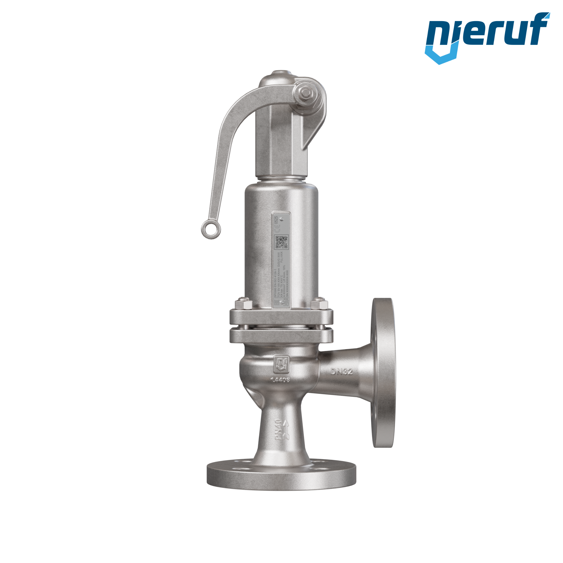 valvola di sicurezza flangiata DN32/DN32 SF03, acciaio inox 1.4408 FPM, con leva