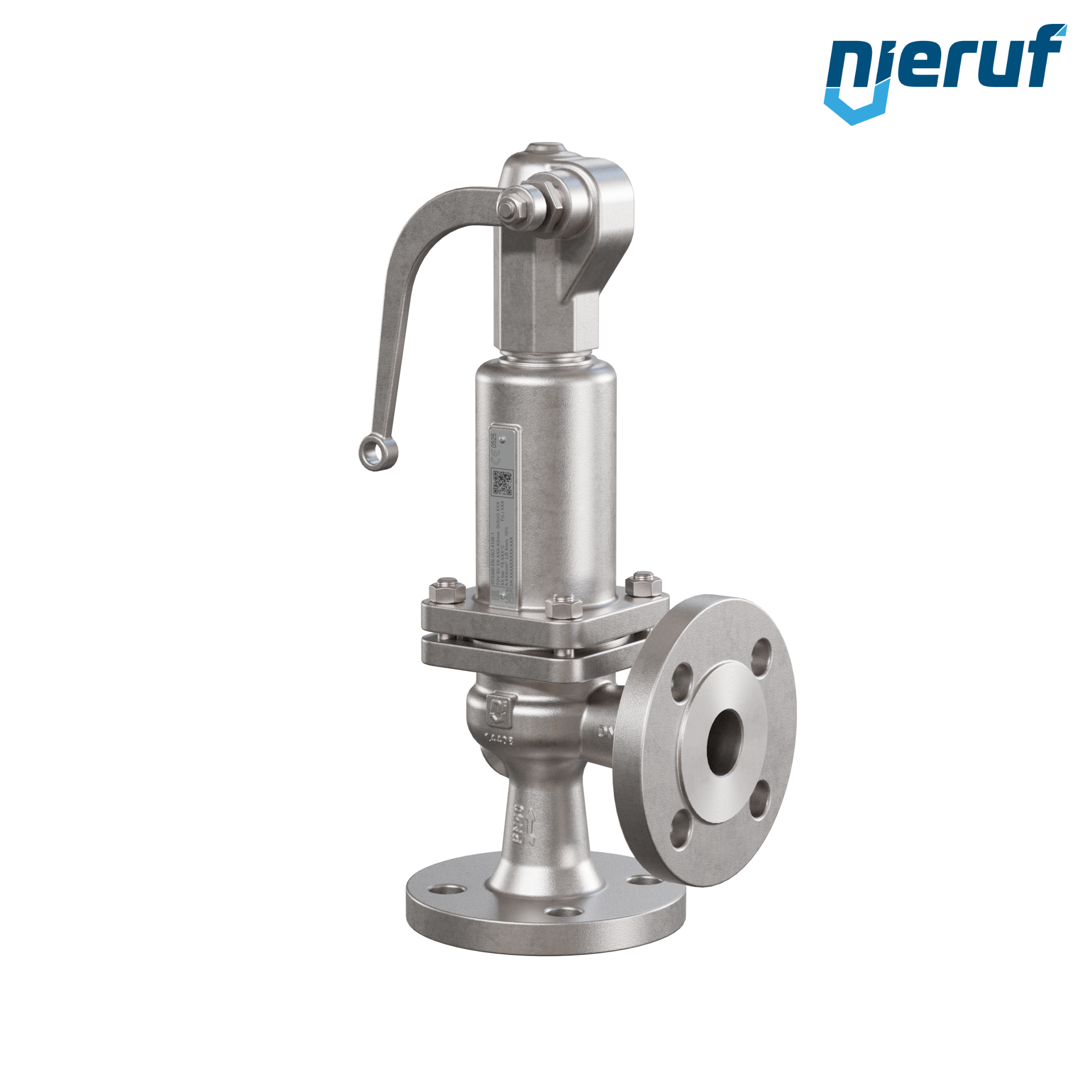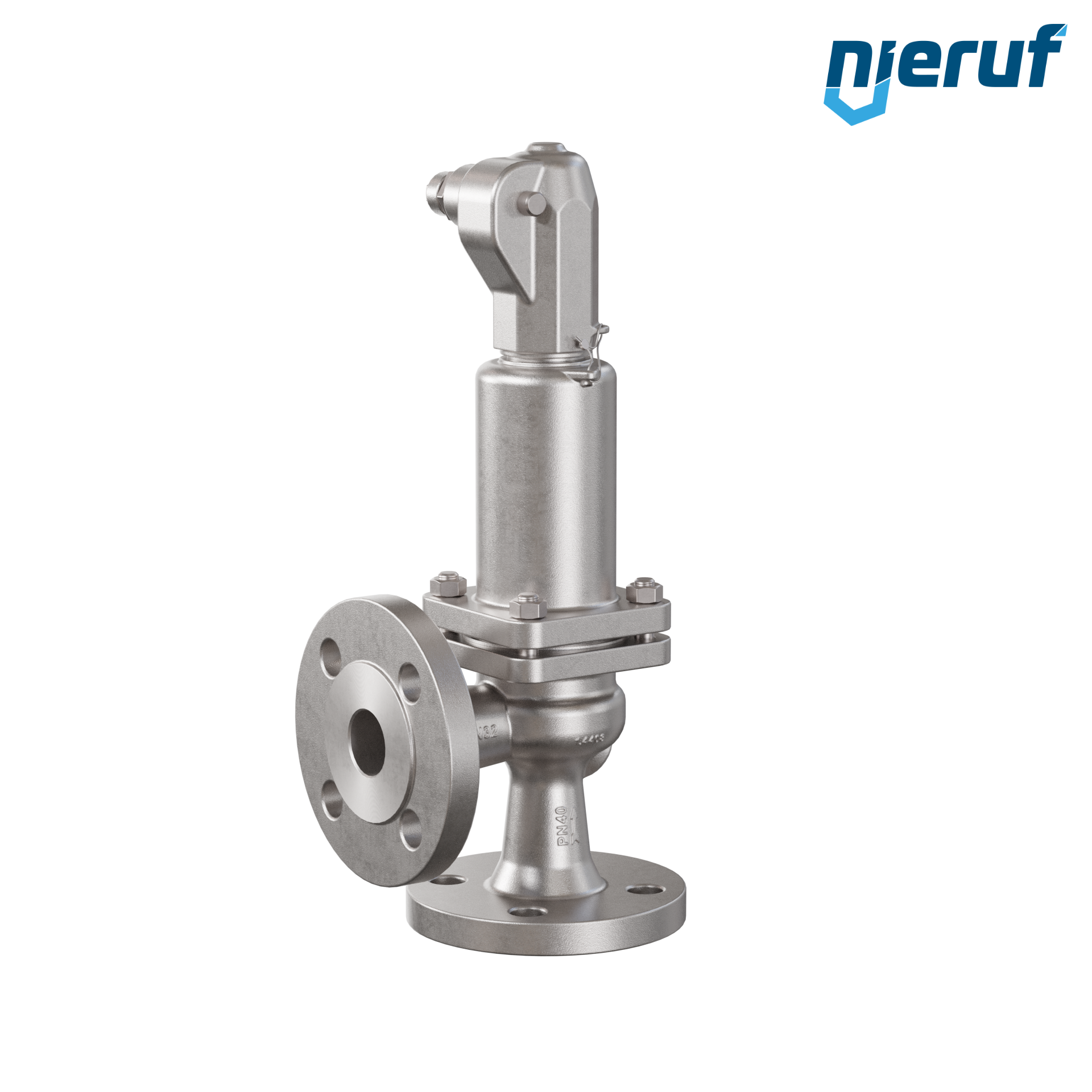 valvola di sicurezza flangiata DN32 SF03 per fluidi liquidi e gassosi in acciaio inox 1.4408 guarnizione FPM pressione 0,5 fino ad un massimo di 40 bar con leva