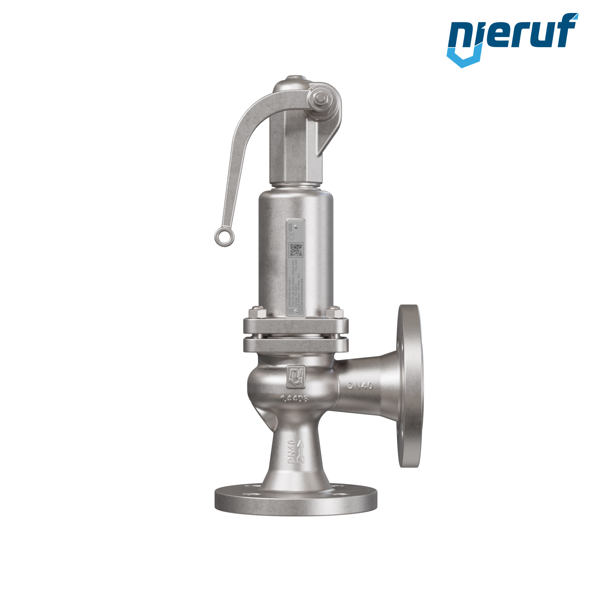 valvola di sicurezza flangiata DN40/DN40 SF03, acciaio inox 1.4408 FPM, con leva