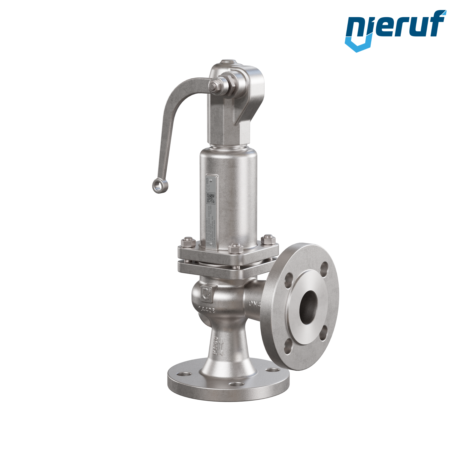 valvola di sicurezza flangiata DN40 SF03 per fluidi liquidi e gassosi in acciaio inox 1.4408 guarnizione FPM pressione 0,5 fino ad un massimo di 40 bar con leva