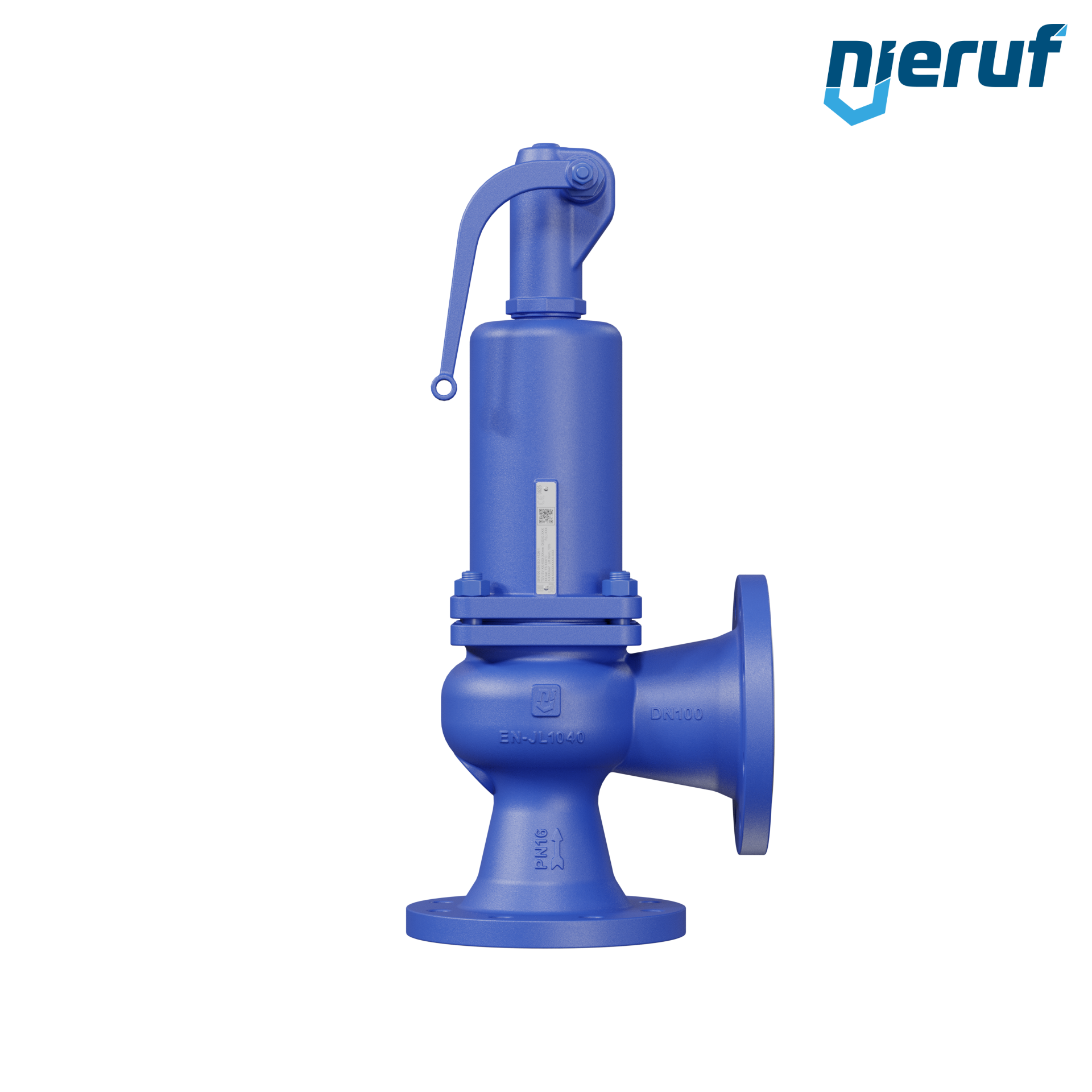 valvola di sicurezza flangiata DN100/DN100 in ghisa grigia EN-JL1040 guarnizione FPM impostazione della pressione 0,5 fino ad un massimo di 16 bar otturatore di scarico con leva