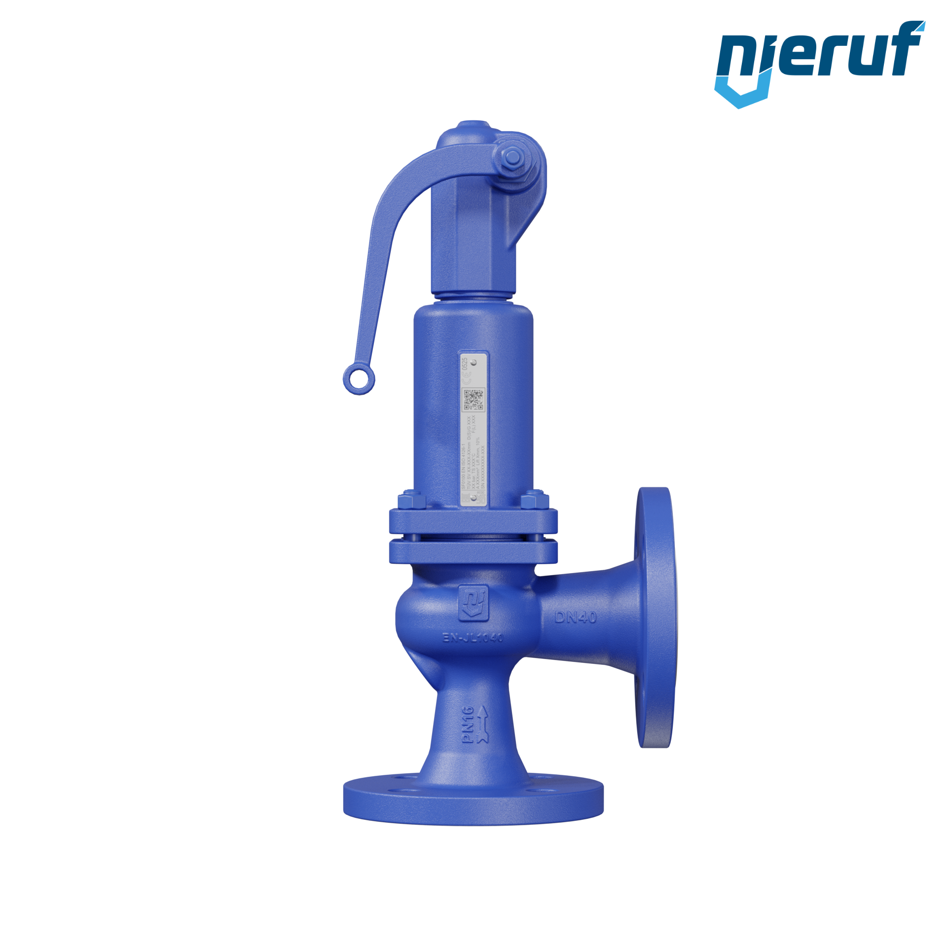 valvola di sicurezza flangiata DN40/DN40 in ghisa grigia EN-JL1040 guarnizione FPM impostazione della pressione 0,5 fino ad un massimo di 16 bar otturatore di scarico con leva