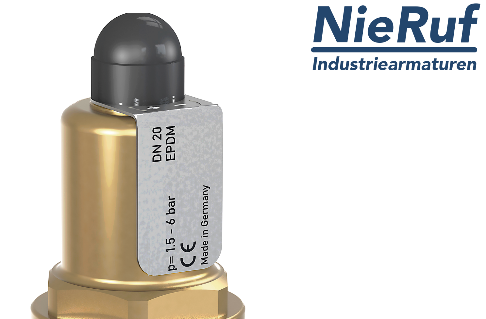 valvola di troppo pieno a pressione differenziale 1 1/4" pollici filettat. est modello UV05 in ottone rosso/ottone campo di regolazione 0,5 - 2,0 bar guarnizione EPDM per fluidi liquidi e gassosi