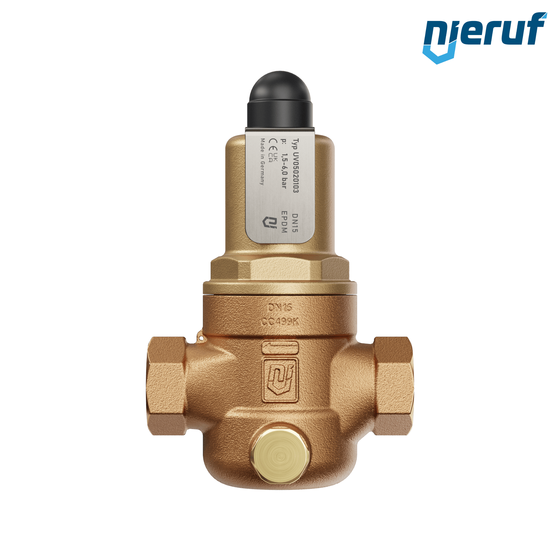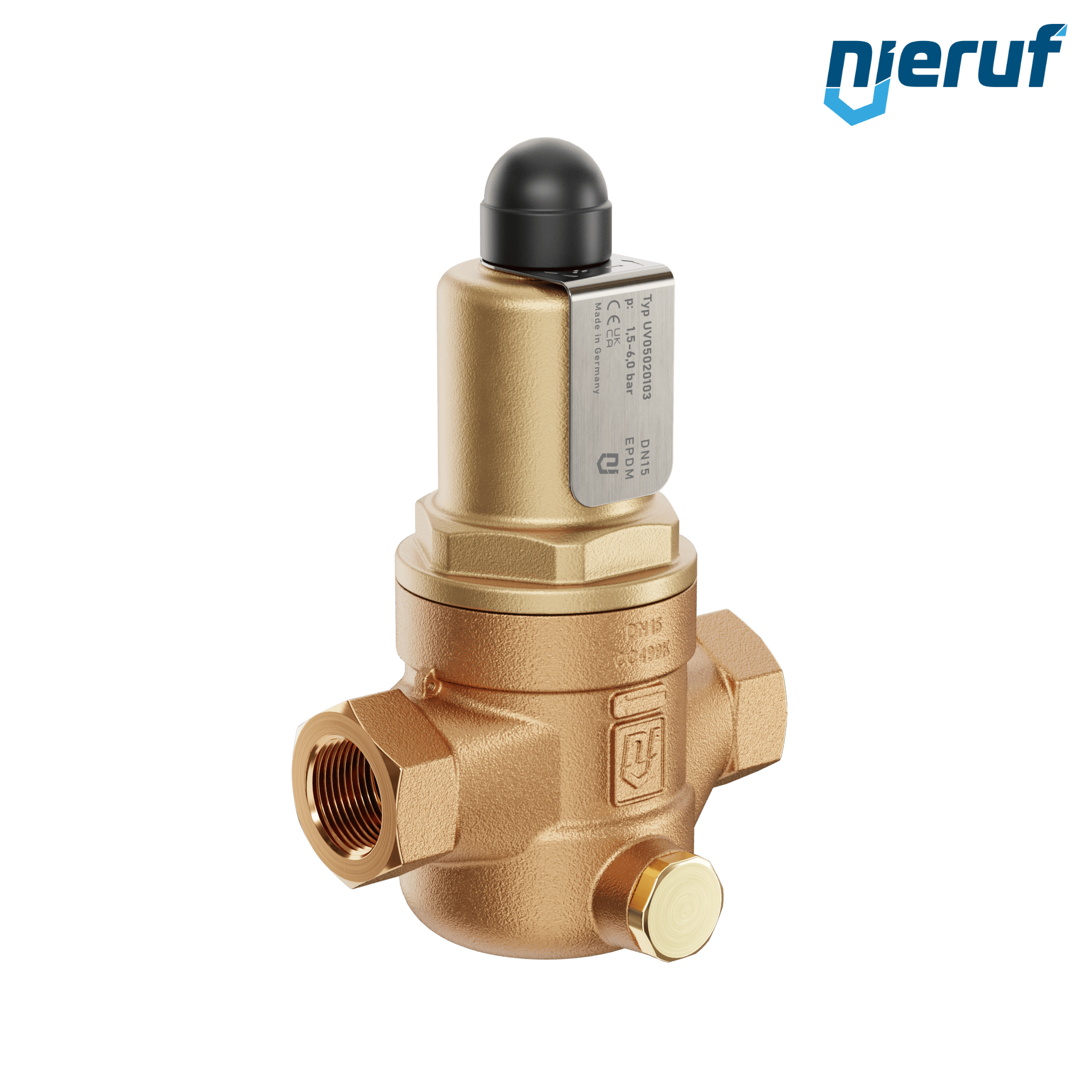 valvola di troppo pieno a pressione differenziale 1/2" pollici filettat. int modello UV05 in ottone rosso/ottone campo di regolazione 1,5 - 6,0 bar guarnizione EPDM per fluidi liquidi e gassosi
