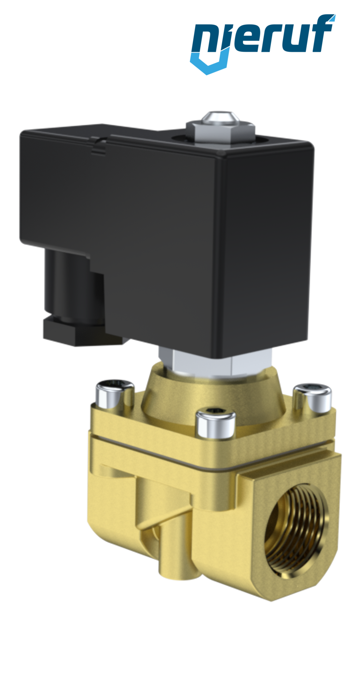 elettrovalvola a 2/2 vie G 1/2" pollici DN10 in ottone, guarnizione in EPDM, a sollevamento assistito / comando misto, tensione nominale 230V 50Hz, pressione 0,0 - 20 bar