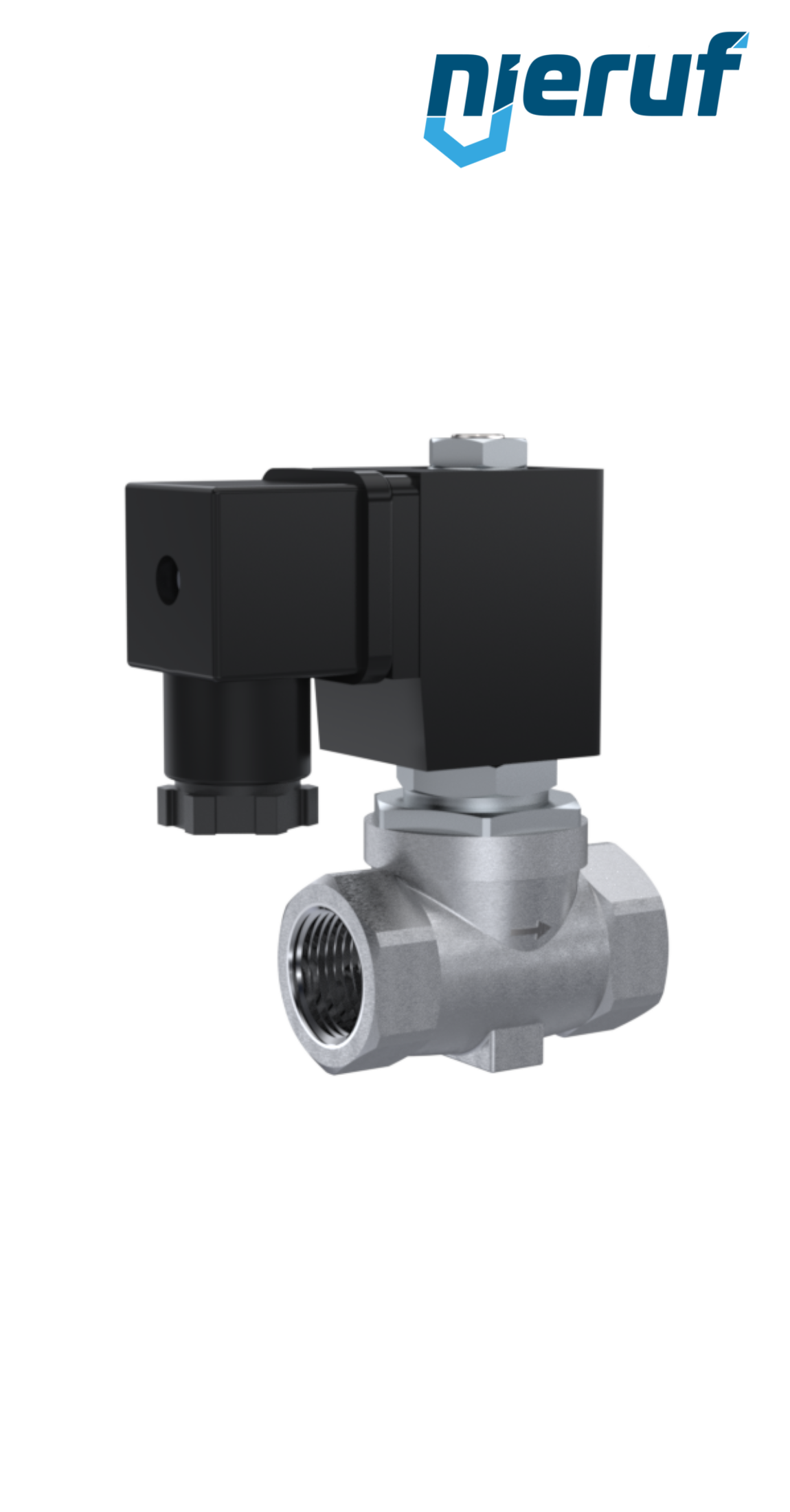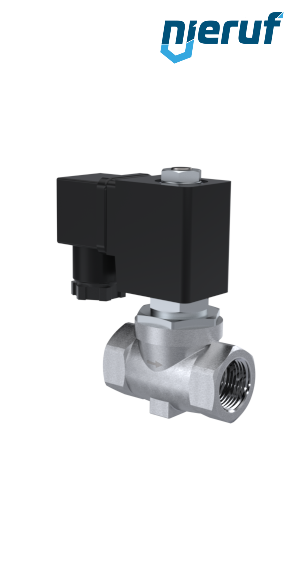 elettrovalvola a membrana G 1/4" pollici DN 8,0 in acciaio inossidabile 1.4408 guarnizione in EPDM, servoassistito, tensione nominale 24V DC, pressione 0,1 - 10 bar