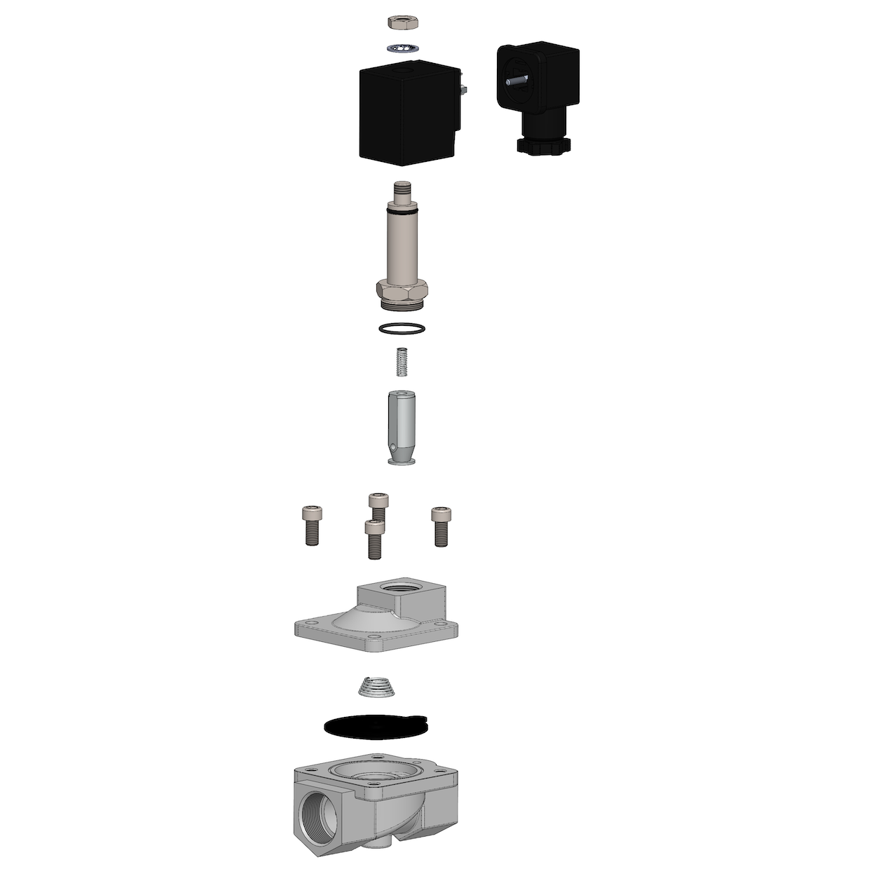 elettrovalvola G 1" pollici DN25 in acciaio inossidabile 1.4408, guarnizione in EPDM, servoassistito, tensione nominale 24V DC, pressione 0,5 - 16 bar