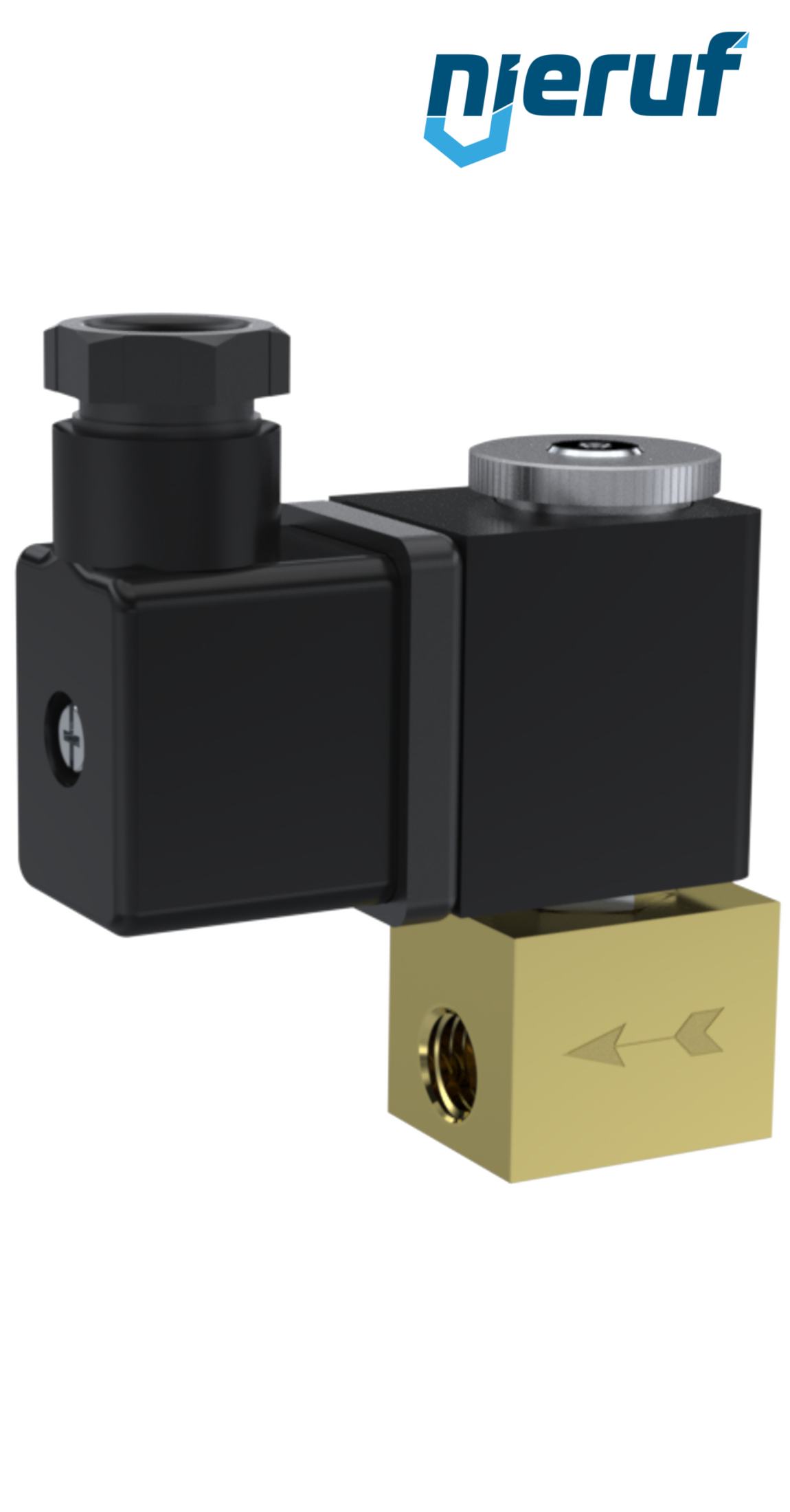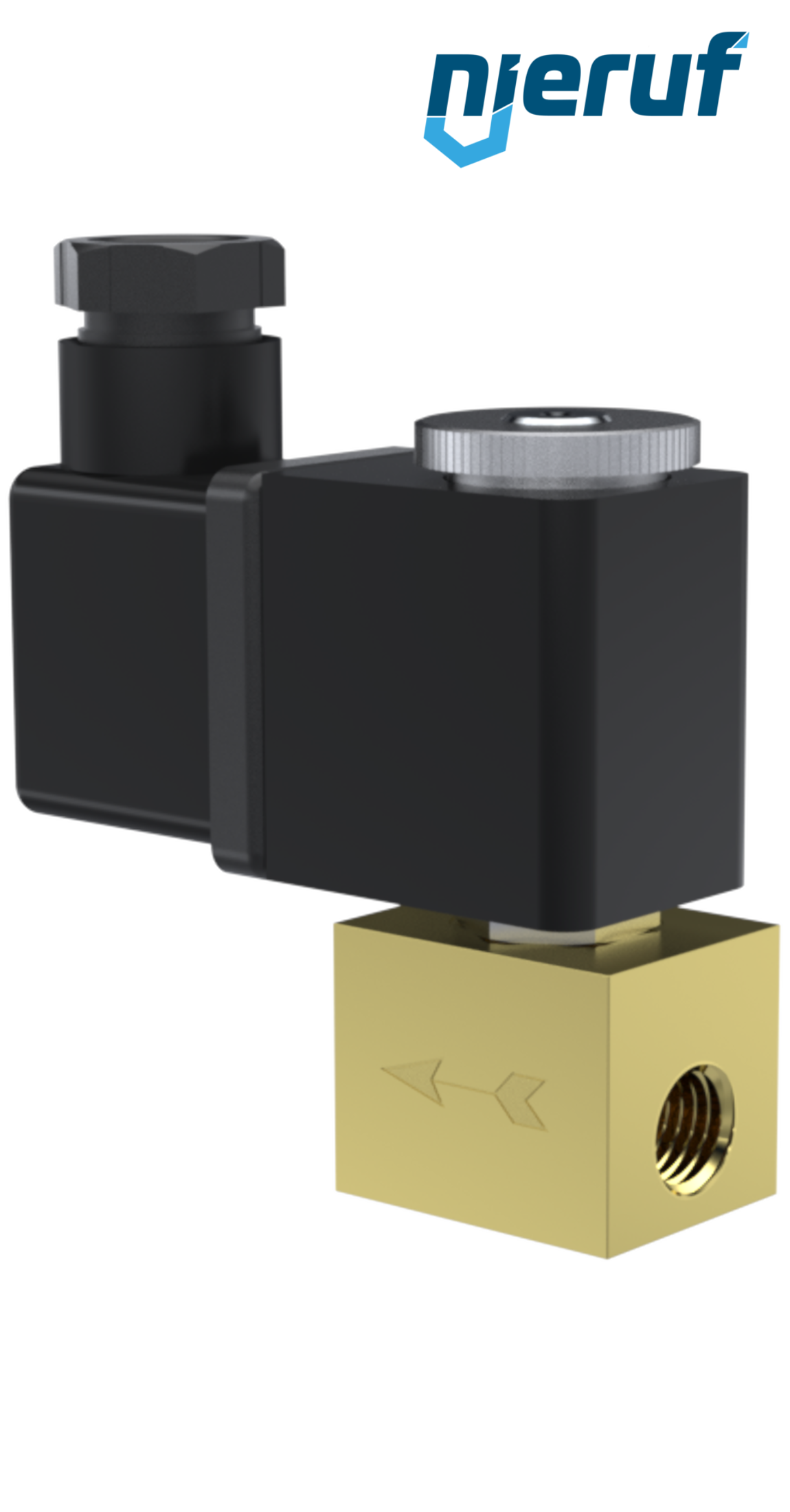 elettrovalvola a 3/2 vie G 1/8" pollici DN2,0 in ottone, guarnizione in FKM, a comando diretto, tensione nominale 24V DC, pressione 0-4 bar