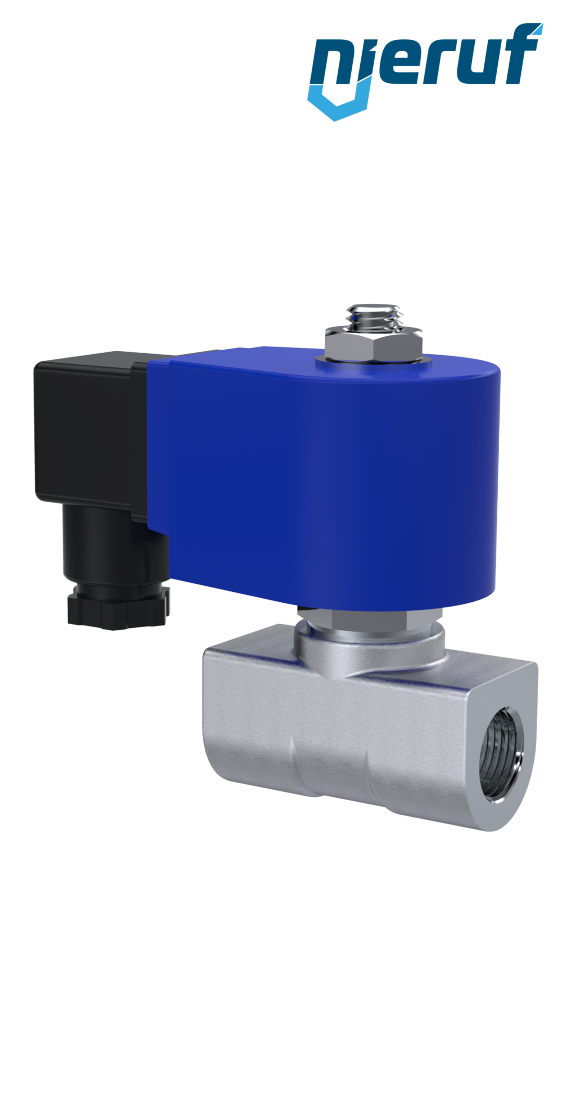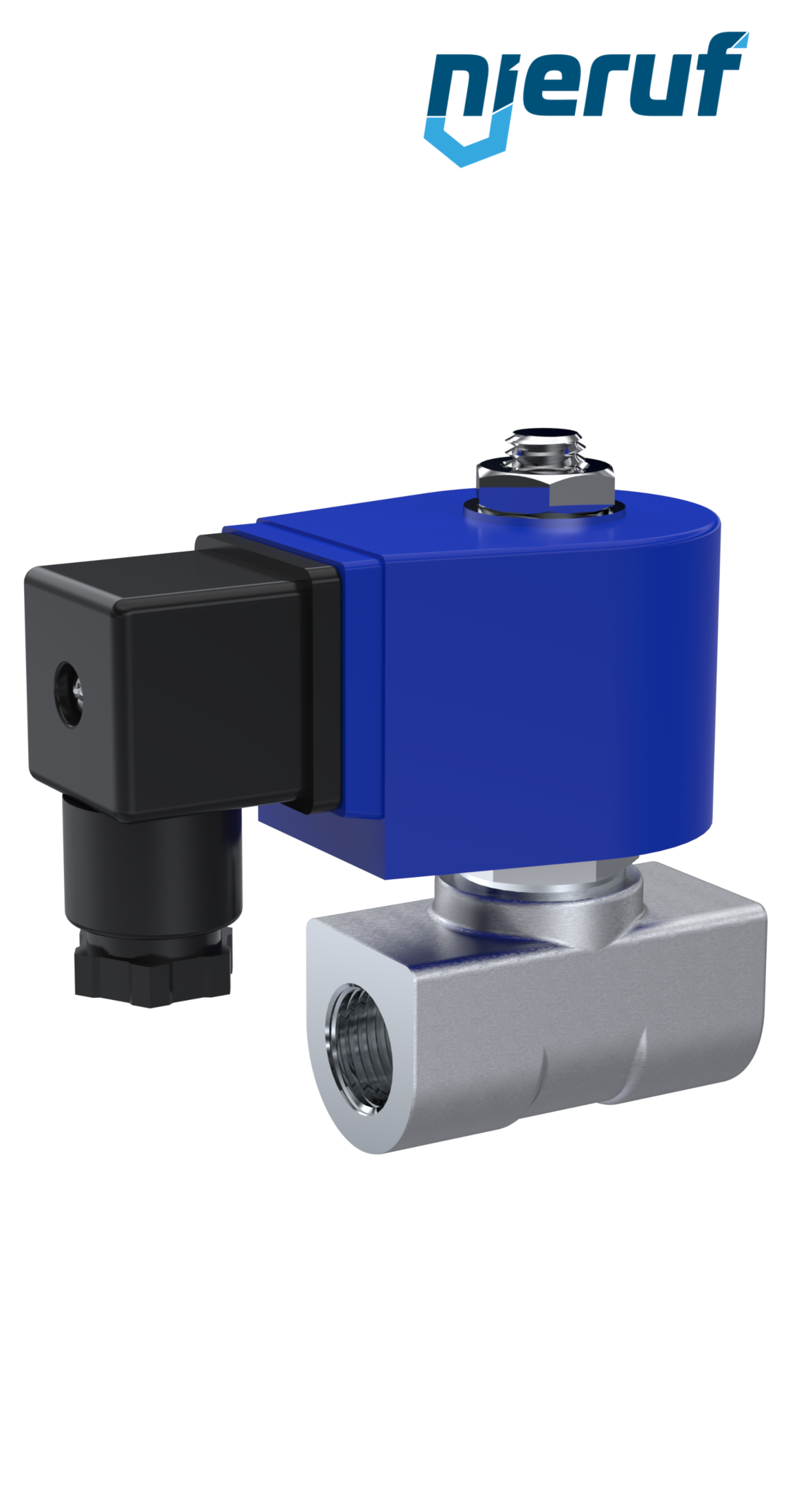elettrovalvola a 2/2 vie per alta pressione G 3/8" pollici in acciaio inossidabile 1.4408, guarnizione in EPDM, a comando diretto tensione nominale 24V DC, pressione 0,0 - 35 bar