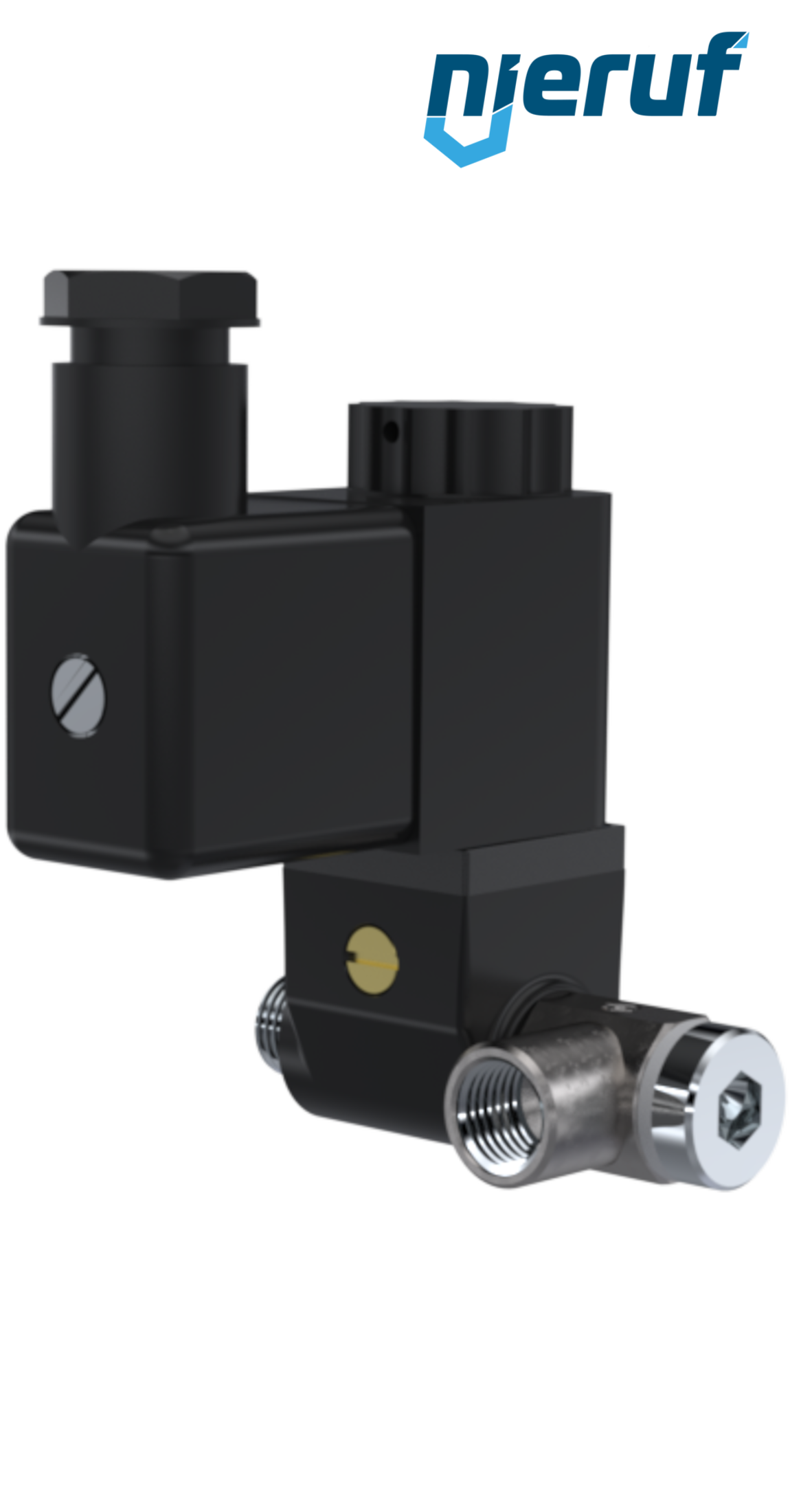 valvola pilota a 3/2, vie uscita: G 1/8" pollici entrata: G 1/8" pollici, plastica (poliammide) 24V DC NC - normalmente chiusa a comando diretto aria compressa -0,9 - 10 bar